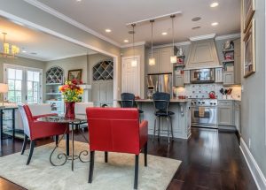 This home in Travelers Rest, SC opted to use red as an accent color in their kitchen, and it pairs pefecting with the white and gray shades in the room.