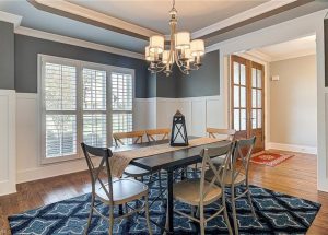 Dark navies with hints of gray are a great addition to every and any room in the house. Most popular in dining rooms and other entertaining spaces, it’s bold yet slightly calm and quiet. It adds an air of elegance and makes you feel regal, but it’s not too showy or over the top.