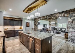 The wood ceiling and kitchen details in this East Bend, NC home look like they it was designed and styled by the farmhouse chic pros–Chip and Joanna Gaines–themselves.