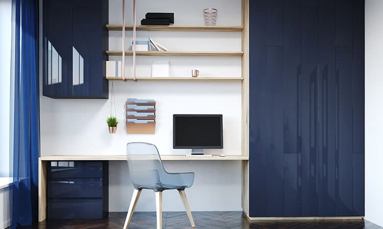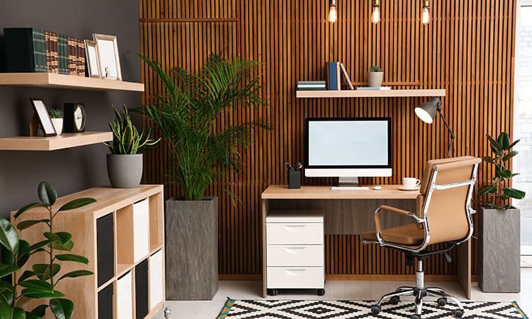 Is working from home stressful and chaotic? Take some time to create a space that better projects calmness and balance. The best way to do that is to reassess your storage. If you “store” all your work supplies and paperwork on the surface of your desk, start there. Invest in new drawers, shelving, and other storage options that will help you stay organized in the way that works best for you. If you have a small, busy space, consider “secret storage” options like hidden filing cabinets that put the clutter out of sight. A thoughtful built-in shelving system can also add functionality to your space and value to your home in the long run.