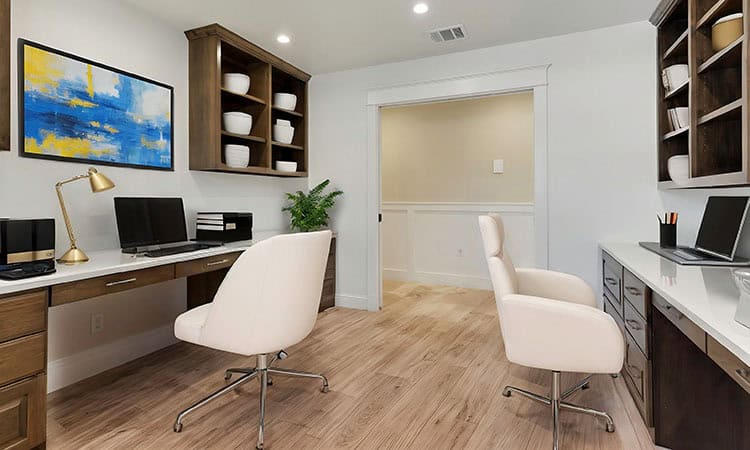 Many creatives do their best work in minimalist spaces with monochromatic color schemes and clean, modern lines. If a zen-inspired home office space works best for you, we recommend going that route. In addition to helping you stay focused during your work day, earth tones and clean spaces look most attractive to home buyers.