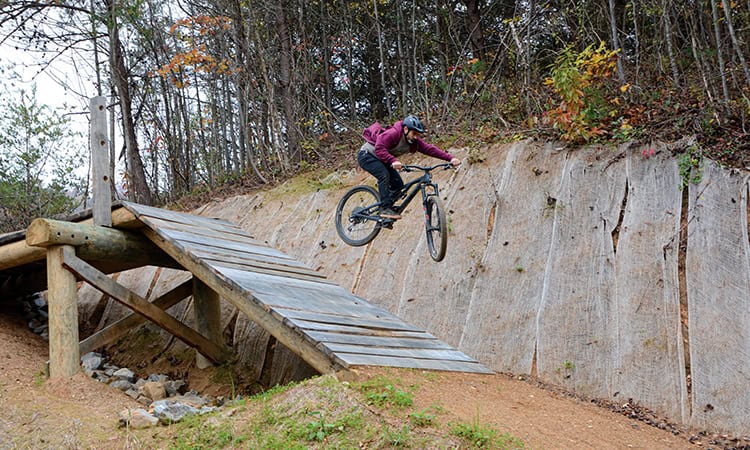 If you’re ready for a challenge, we recommend the Wayehutta, Black Mountain, and Deep Gap Trail system. Located a few miles from Waynesville, just outside Cullowhee, the system offers numerous, well-marked trail combinations. The Black Mountain Trail is a relatively new rework from approximately two years ago and has a great mix of both flowy and smooth sections, as well as some highly technical terrain. Depending on your route, you can plan for 2,788 feet of elevation gain! Plan to see some ATVs as you travel the half natural, half gravel trail. Click for more info.